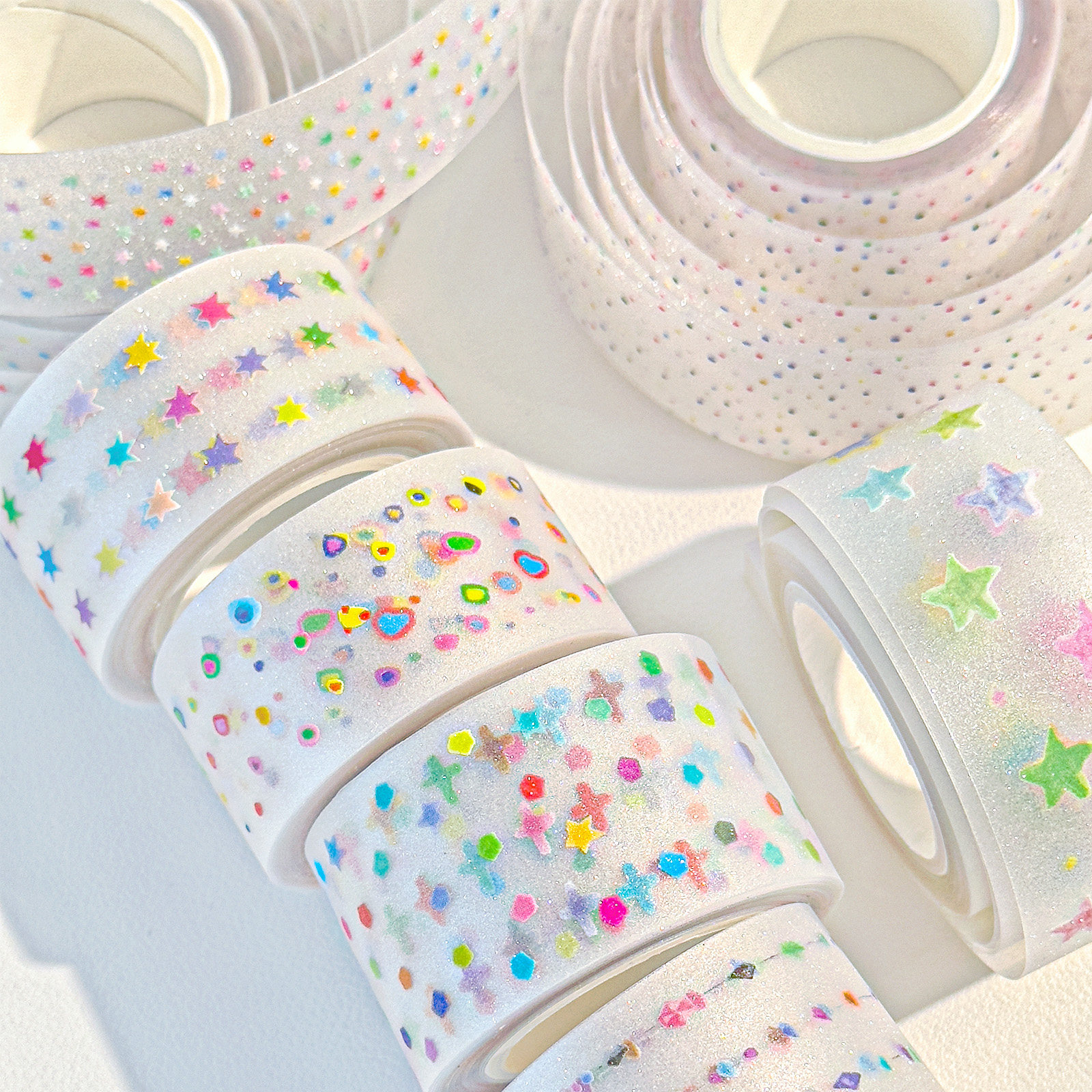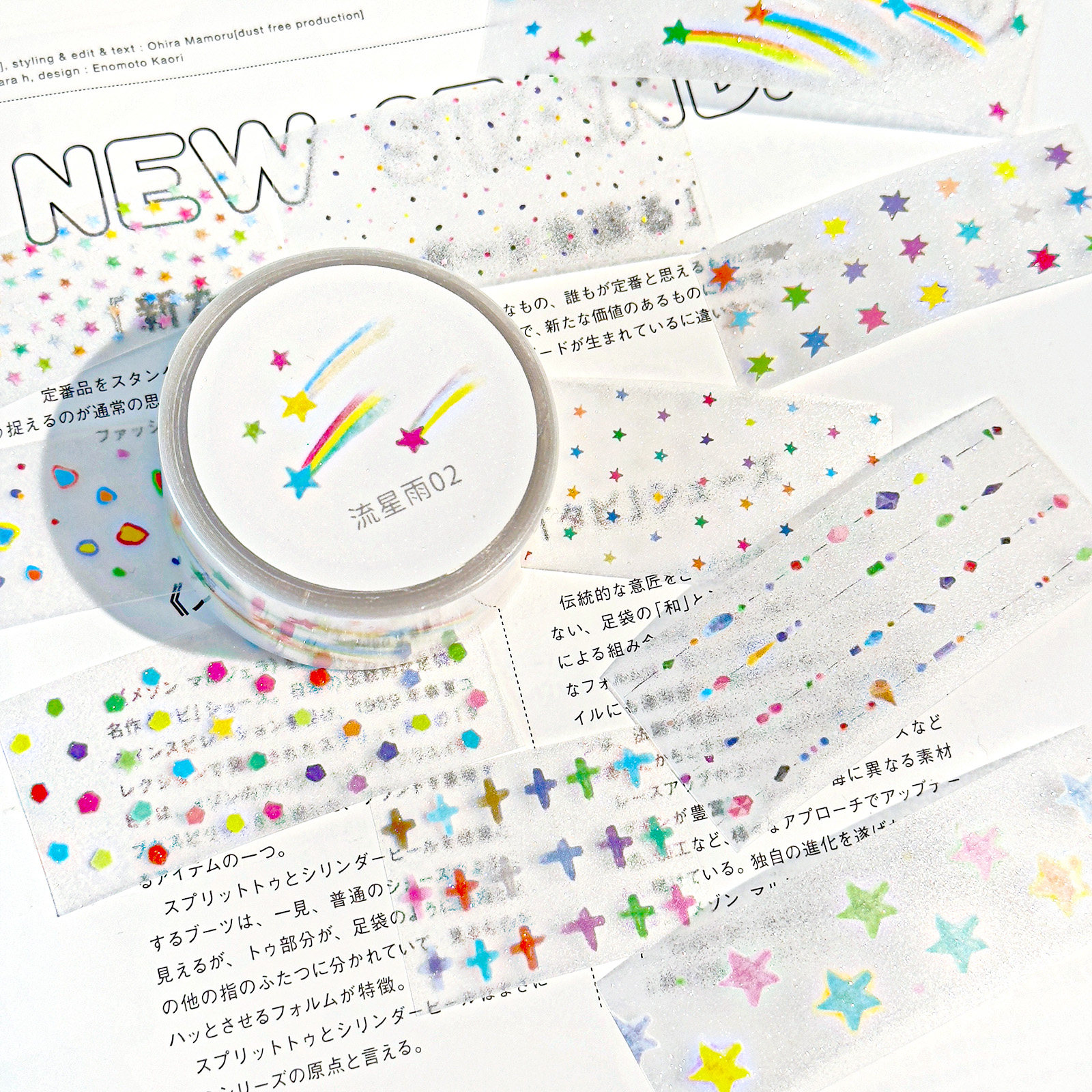 AGUGU恒温系列台湾和纸胶带pet闪砂胶带星星基础拉条日系盐系手账