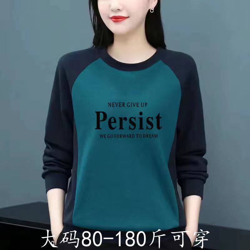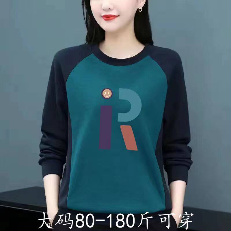 中年打底衫100%纯棉显瘦秋冬长袖新款大码拼接卫衣上衣潮灰色蓝色