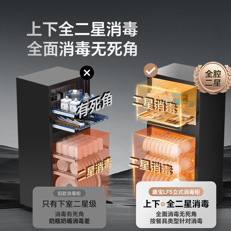 康宝LF5家用消毒柜100℃环流热风无菌储存不锈钢内胆层架消毒碗柜