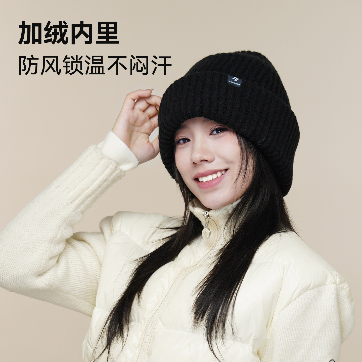 lackpard力可派帽子秋冬新款女士弹力加绒经典针织帽大头围防风帽