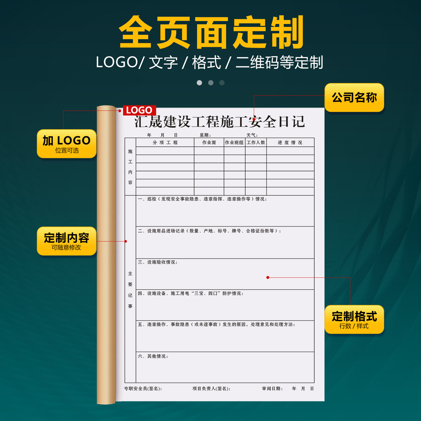 【施工安全日志】定制市政工程检查监管日记工地巡视监督记事本安全隐患监理巡查记录本项目工作进度装修手册