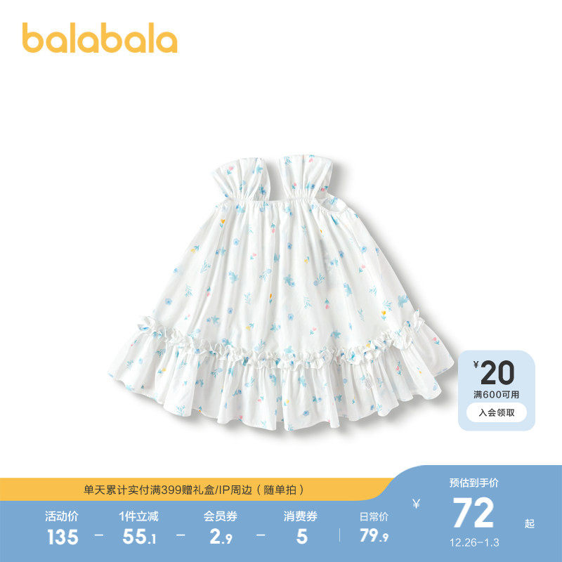 巴拉巴拉童装儿童连衣裙女童吊带裙甜美度假裙子夏碎花裙洋气可爱