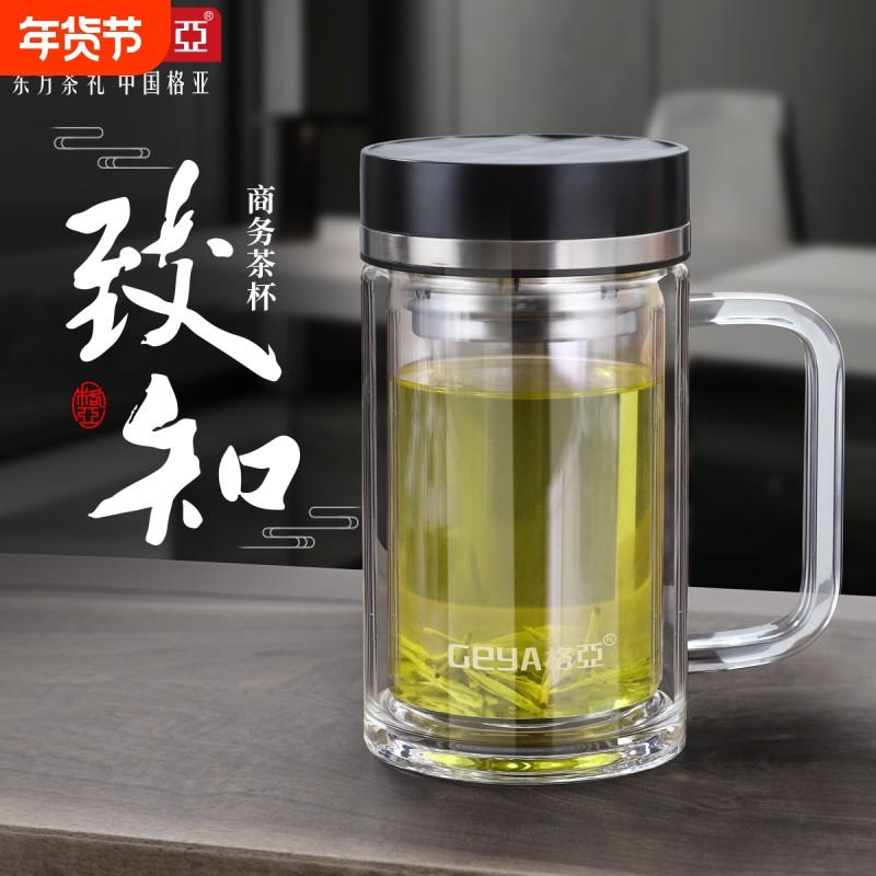 格亚双层玻璃杯办公杯手柄耐热加厚把手水杯水晶玻璃茶杯商务