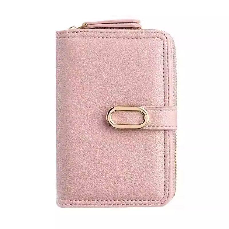 简约钱包女士短款小巧多卡位折叠卡包零钱包二合一荔枝纹学生钱夹