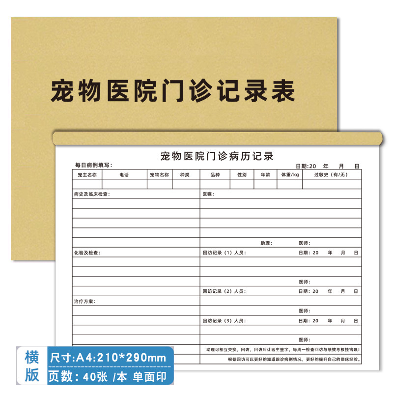 宠物医院门诊登记本宠物前台记录本档案动物诊所处方笺疫苗注射买卖门诊记录宠物寄养协议信息登记簿回访定制