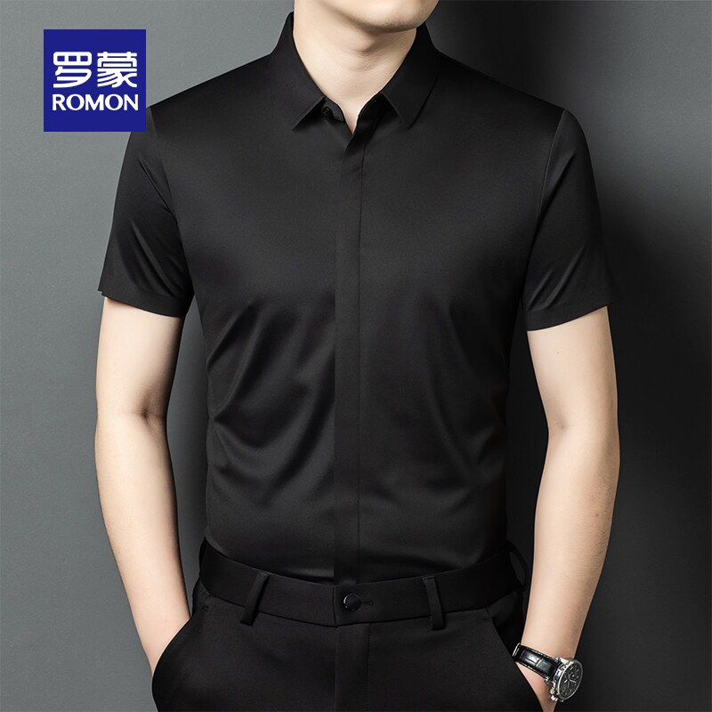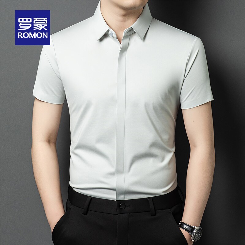 【含桑蚕丝+亚麻】罗蒙男士商务休闲短袖衬衫2026夏季新款衬衣男