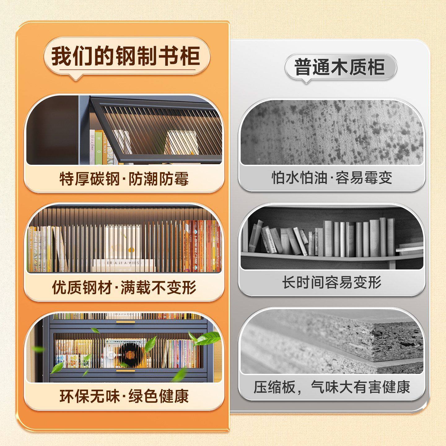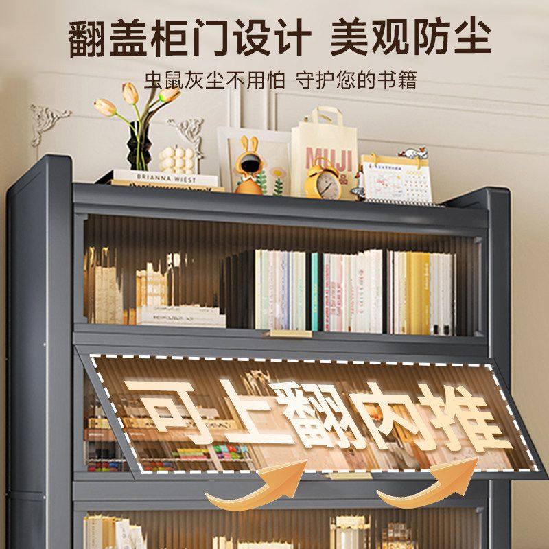 钢制书柜带门儿童书架一体靠墙防尘储物展柜落地多层置物架收纳柜