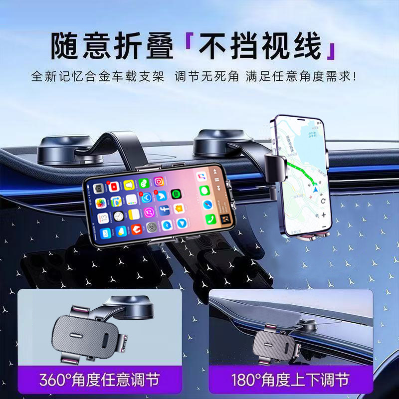 车载手机支架2025折叠仪表台玻璃吸盘导航固定支架抗震防抖横竖用
