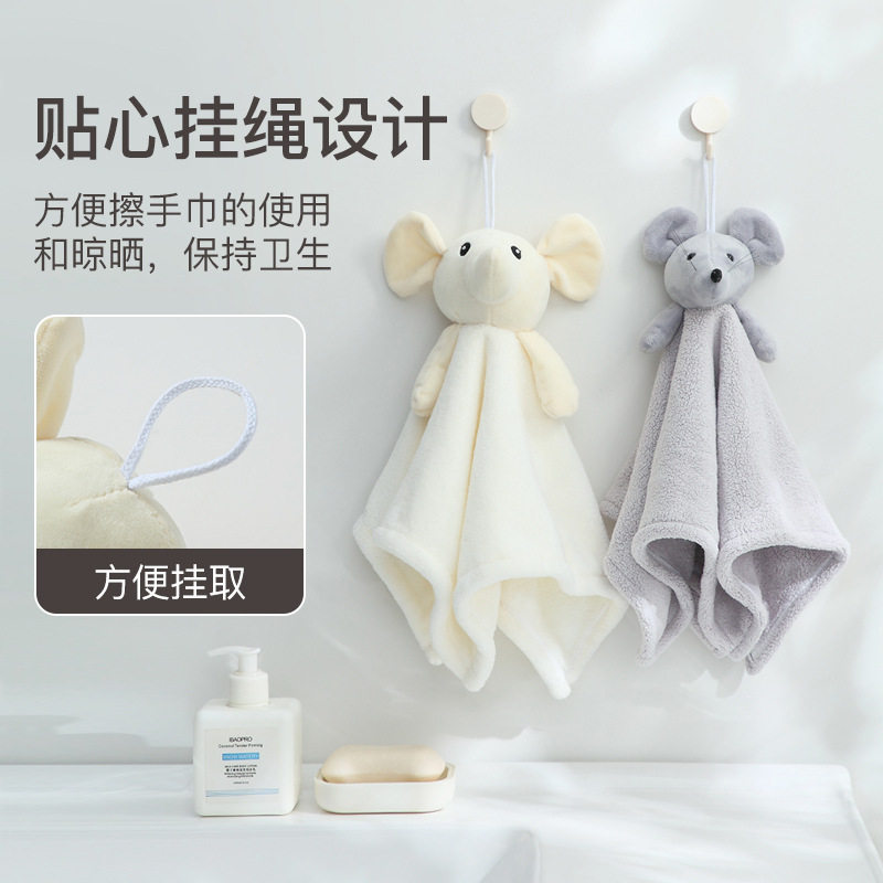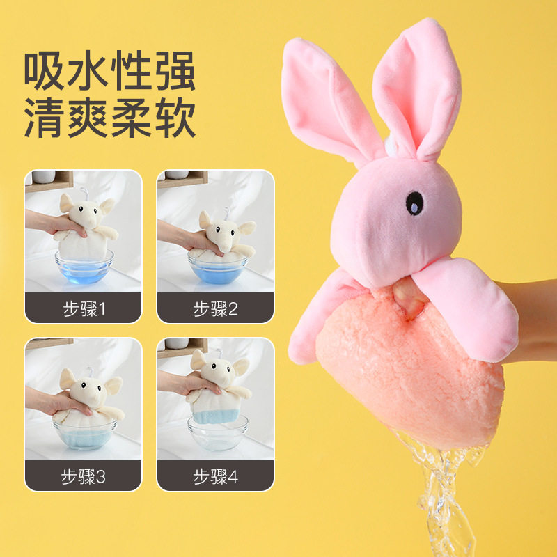 家用卫生间厨房可挂式擦手毛巾可爱动物造型吸水儿童擦手巾批发