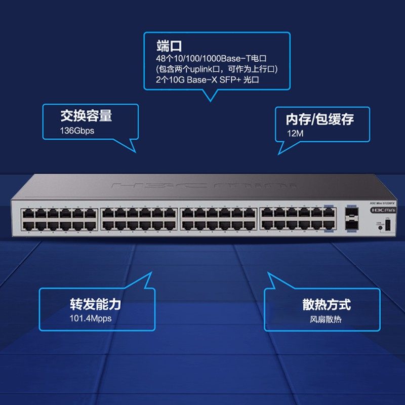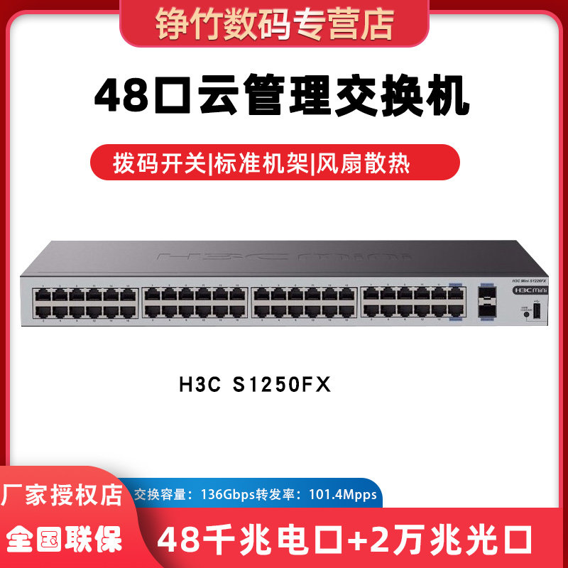 新华三(H3C)S1250FX 48口千兆电+2万兆光纤口非网管企业级网络交换机防雷云管一键VLAN替代S1248