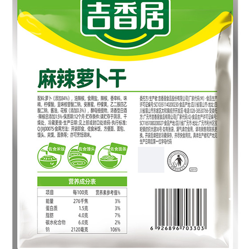 吉香居麻辣萝卜干四川特产泡菜香辣下饭菜榨菜小包咸菜52g袋装