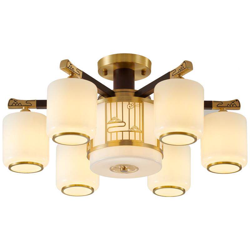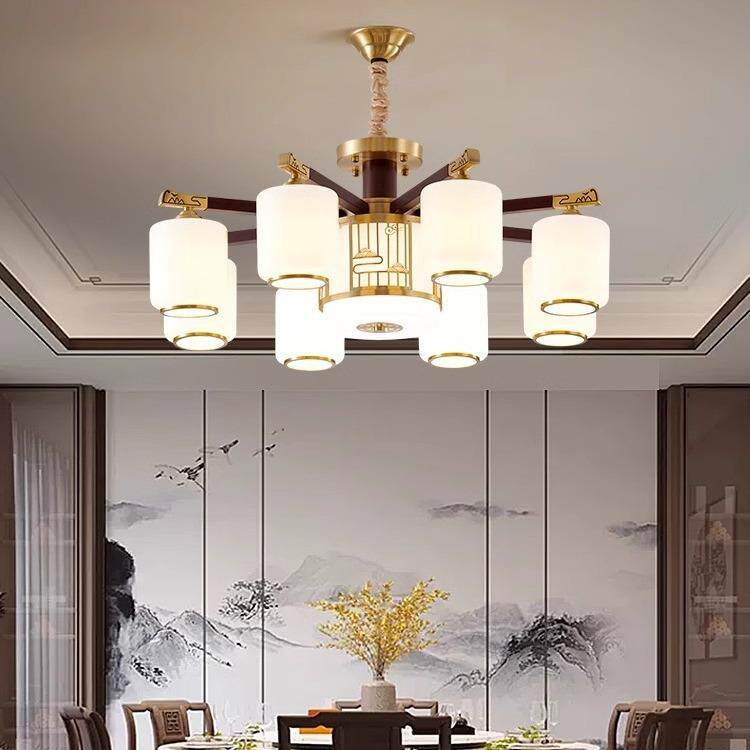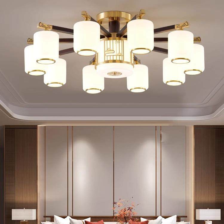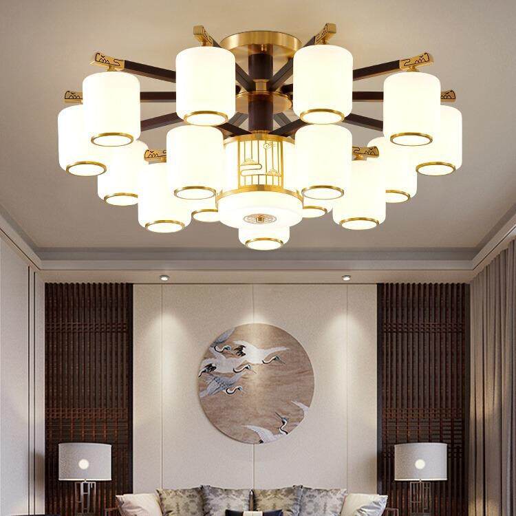 新中式全铜实木吸顶灯中国风复古卧室书房吸吊两用客厅灯中山灯饰