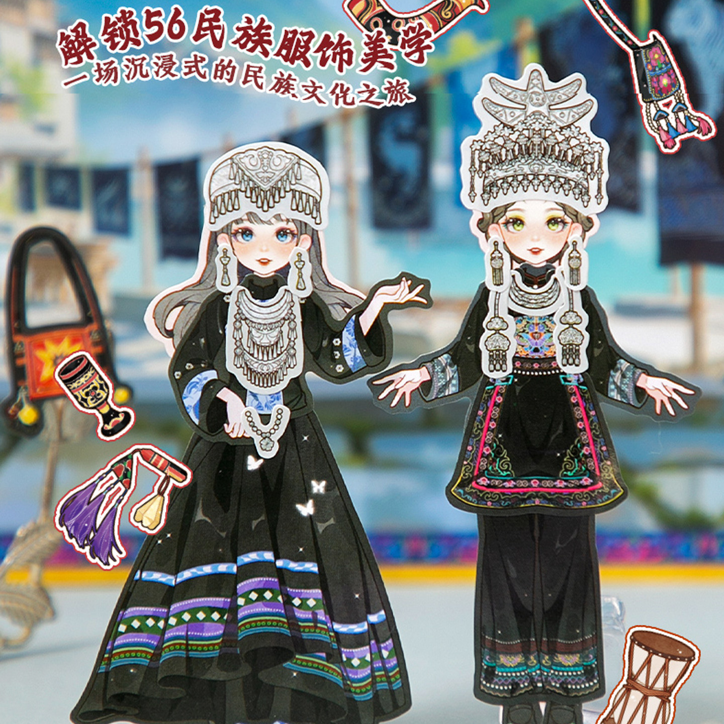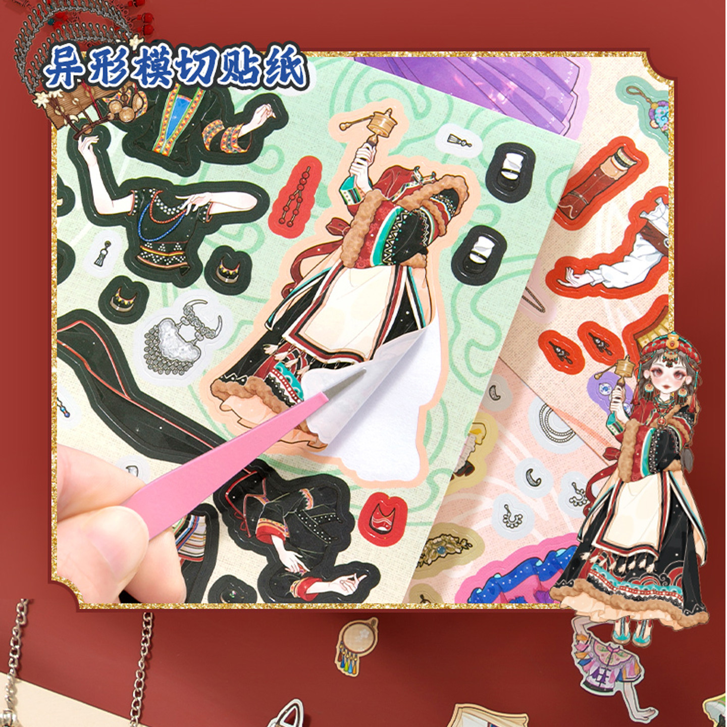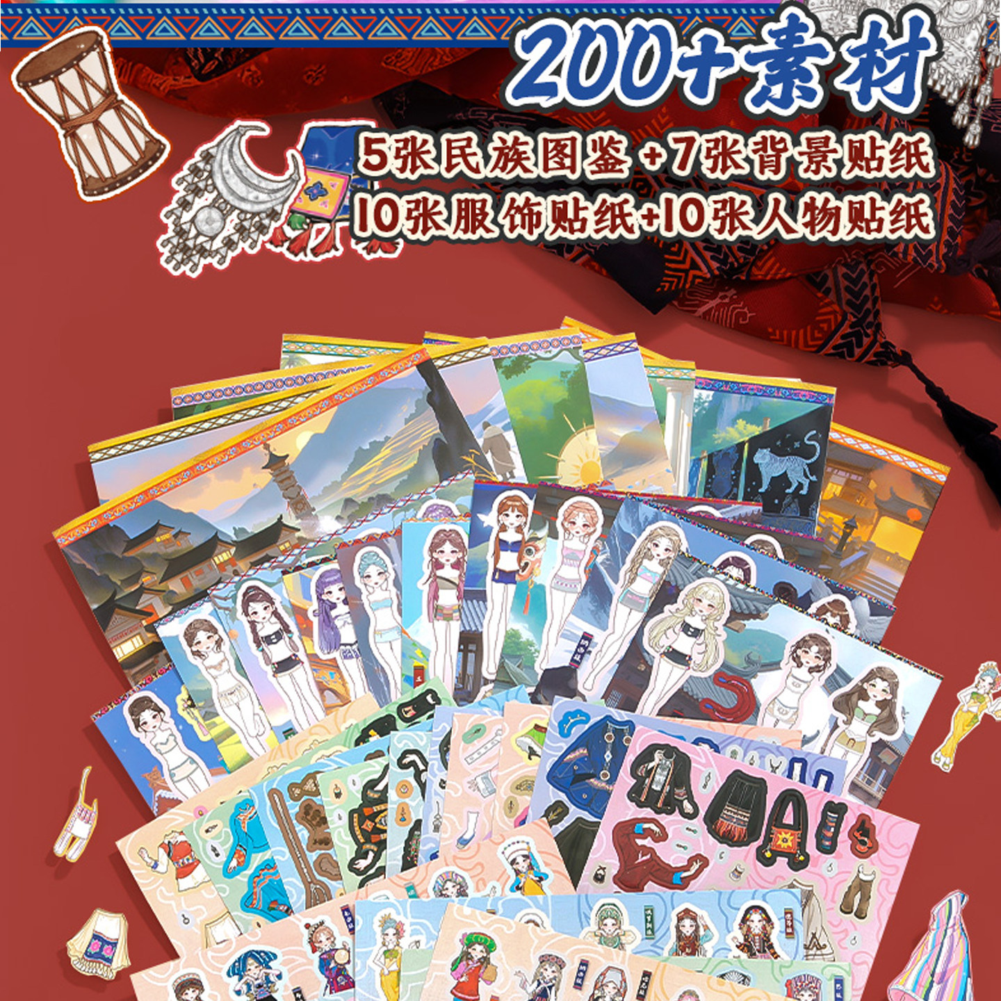 (一本解锁56个少数名族)免剪裁200+素材不重复益智换装贴纸游戏安静书diy678910岁奖励女孩儿童节生日礼物