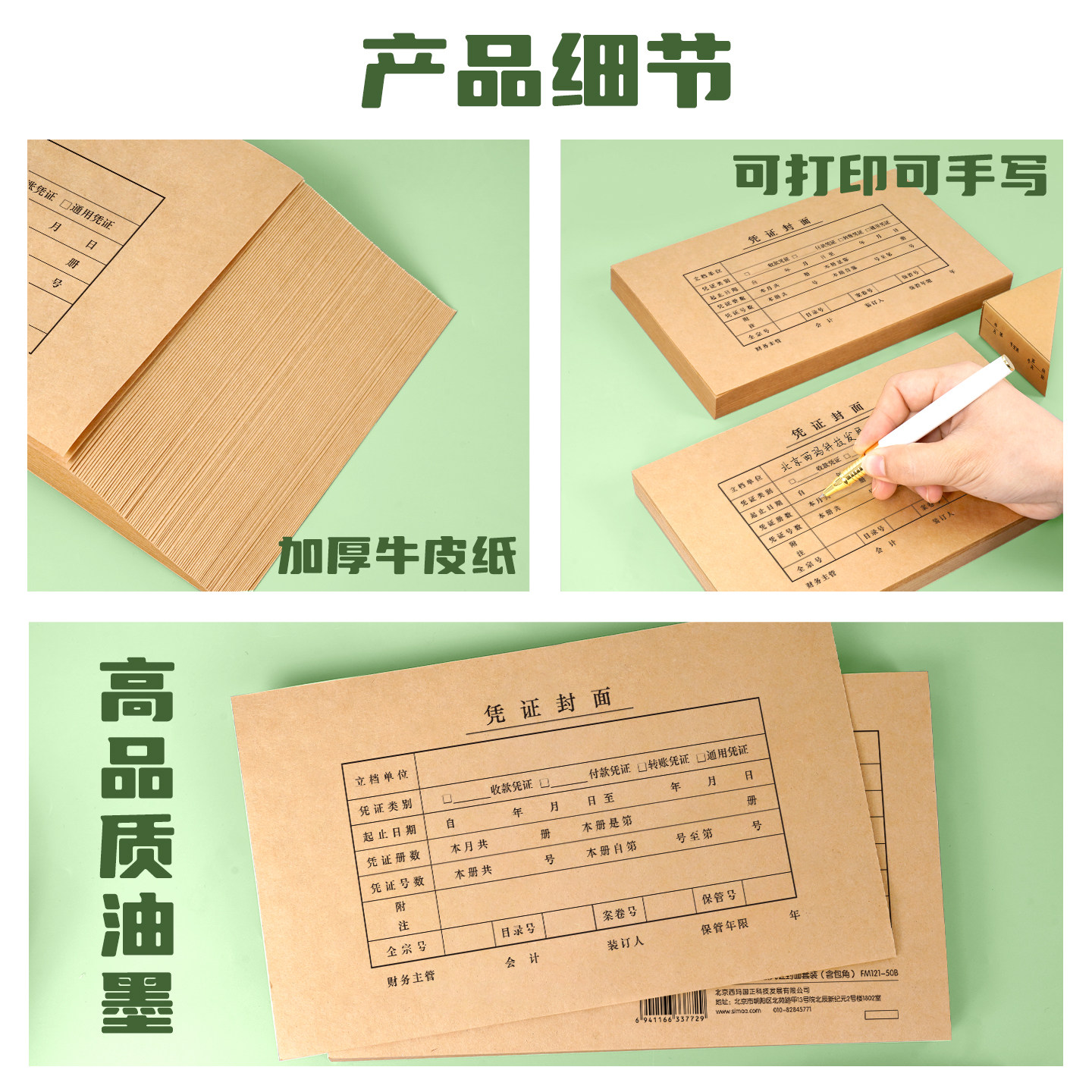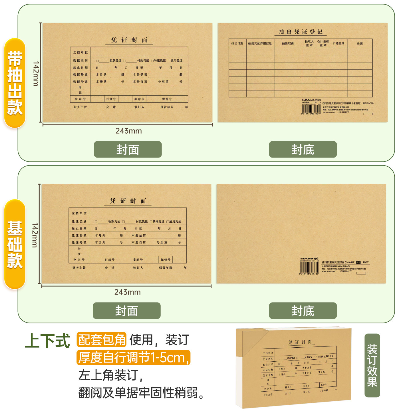 西玛100套会计凭证封面财务记账加厚通用243×142凭证账本装订牛皮纸增值税发票装订封皮办公用品可定制FM121