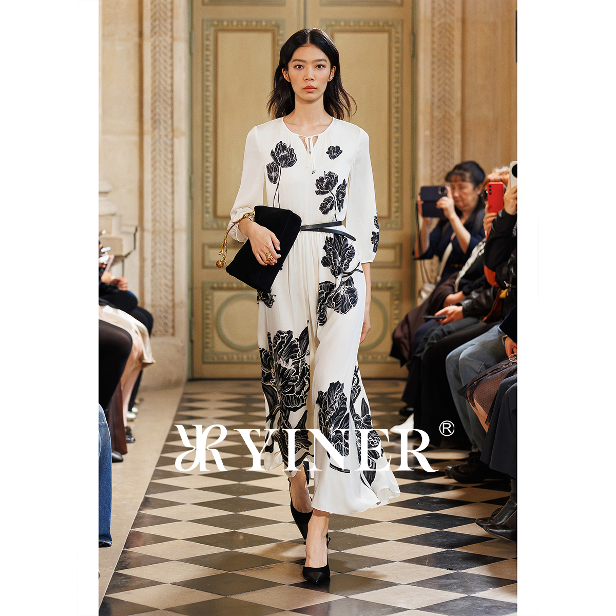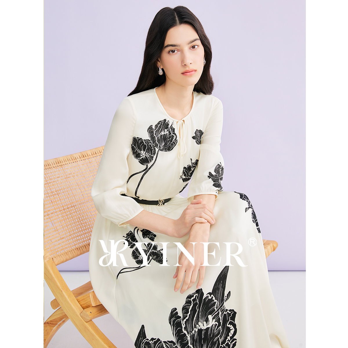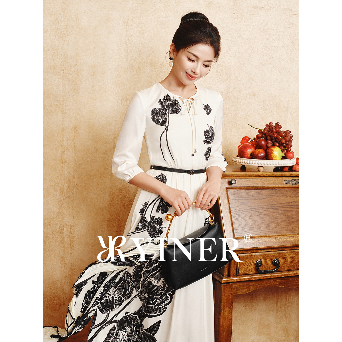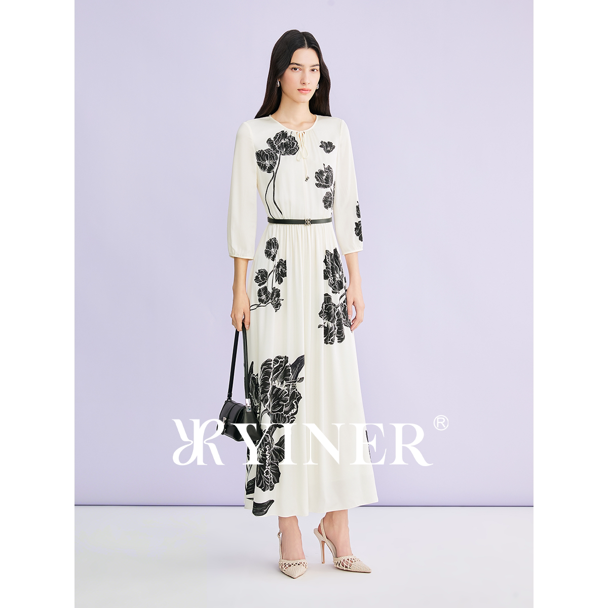 【刘涛同款】YINER音儿2026夏季新款优雅桑蚕丝混纺收腰连衣裙