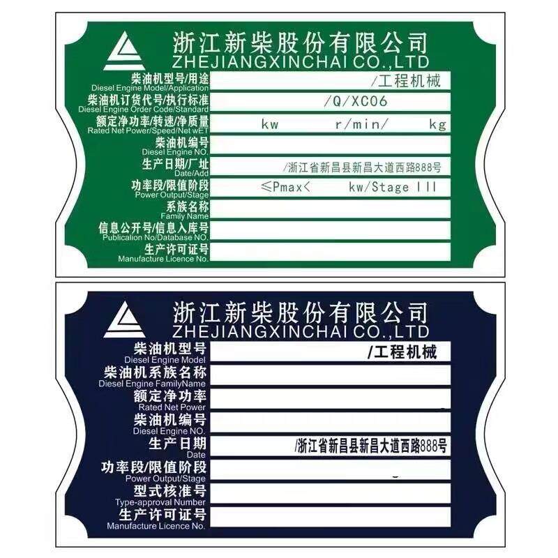 定制铝牌叉车挖掘机三一装载机柴油机发动机拖拉机挂车杭叉压路机