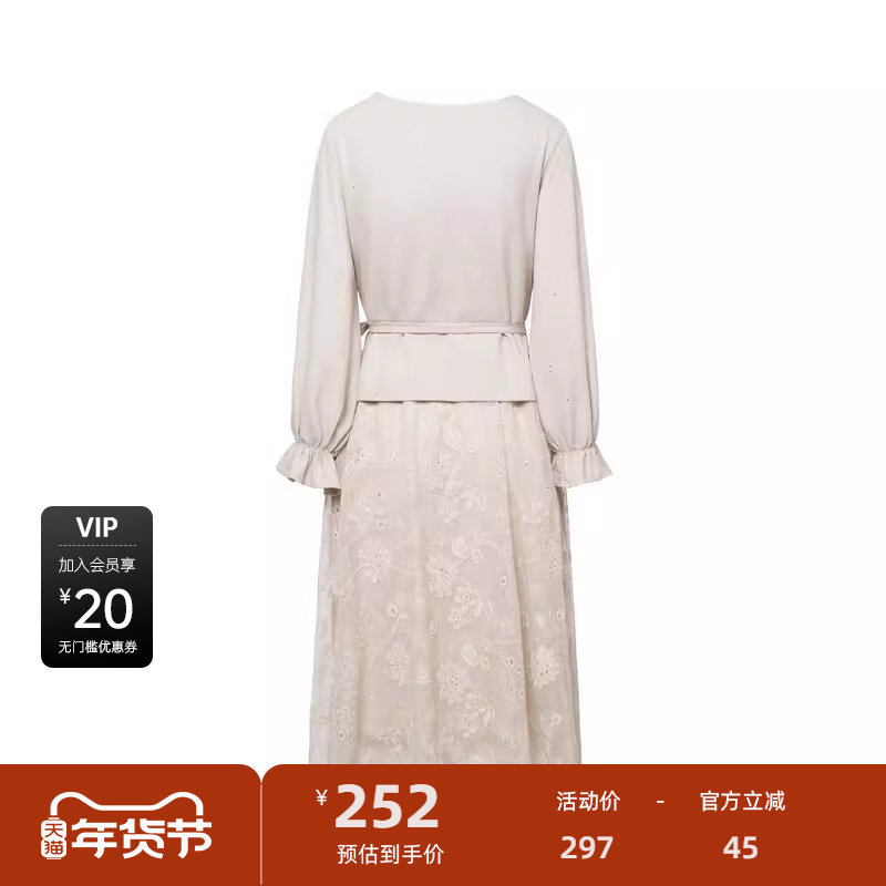 sdeer圣迪奥女装清新圆领收腰绣花假两件连衣裙S244Z1207