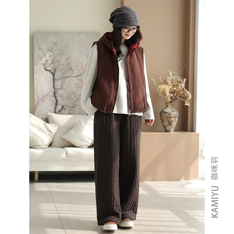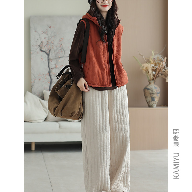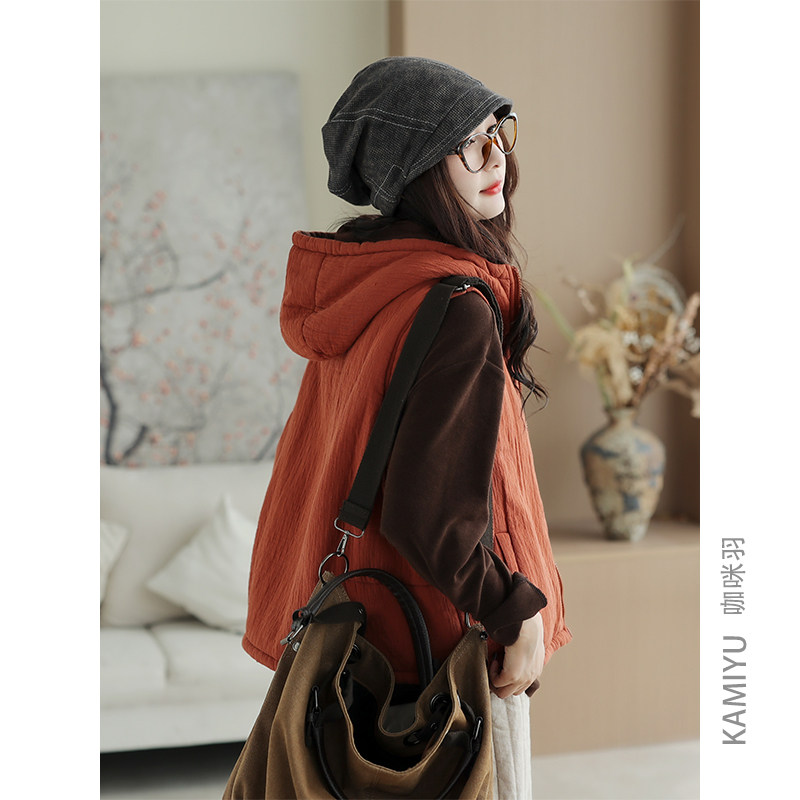 咖咪羽复古洋气减龄连帽夹棉马甲女秋季宽松显瘦工装宽松背心
