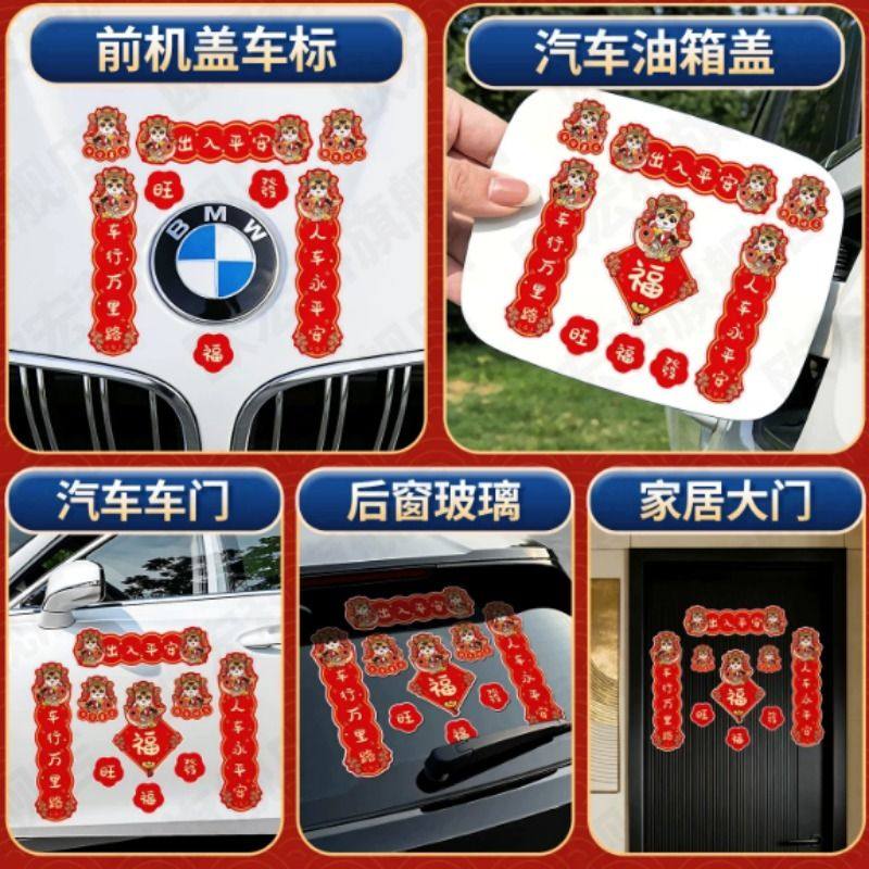 新款2026汽车对联车贴磁吸马年出入平安新年过年车上春联迷你贴纸
