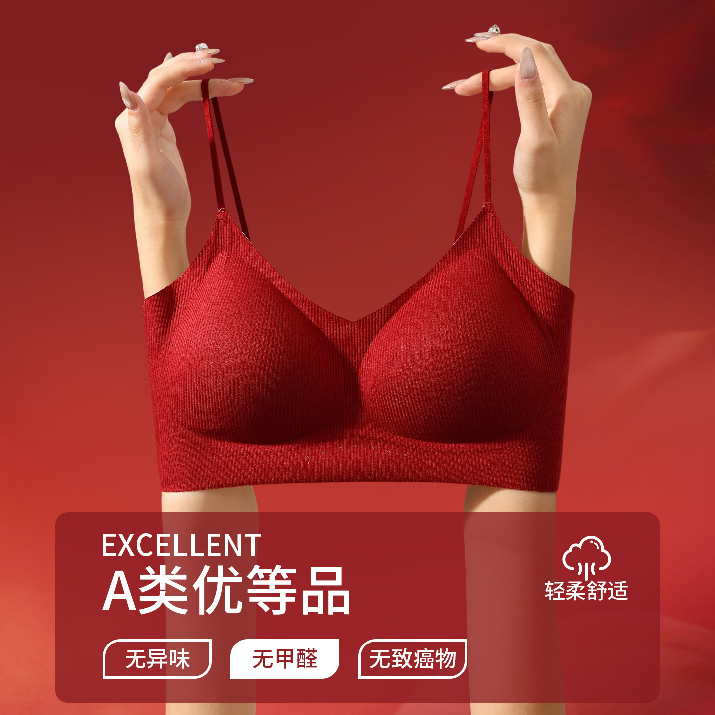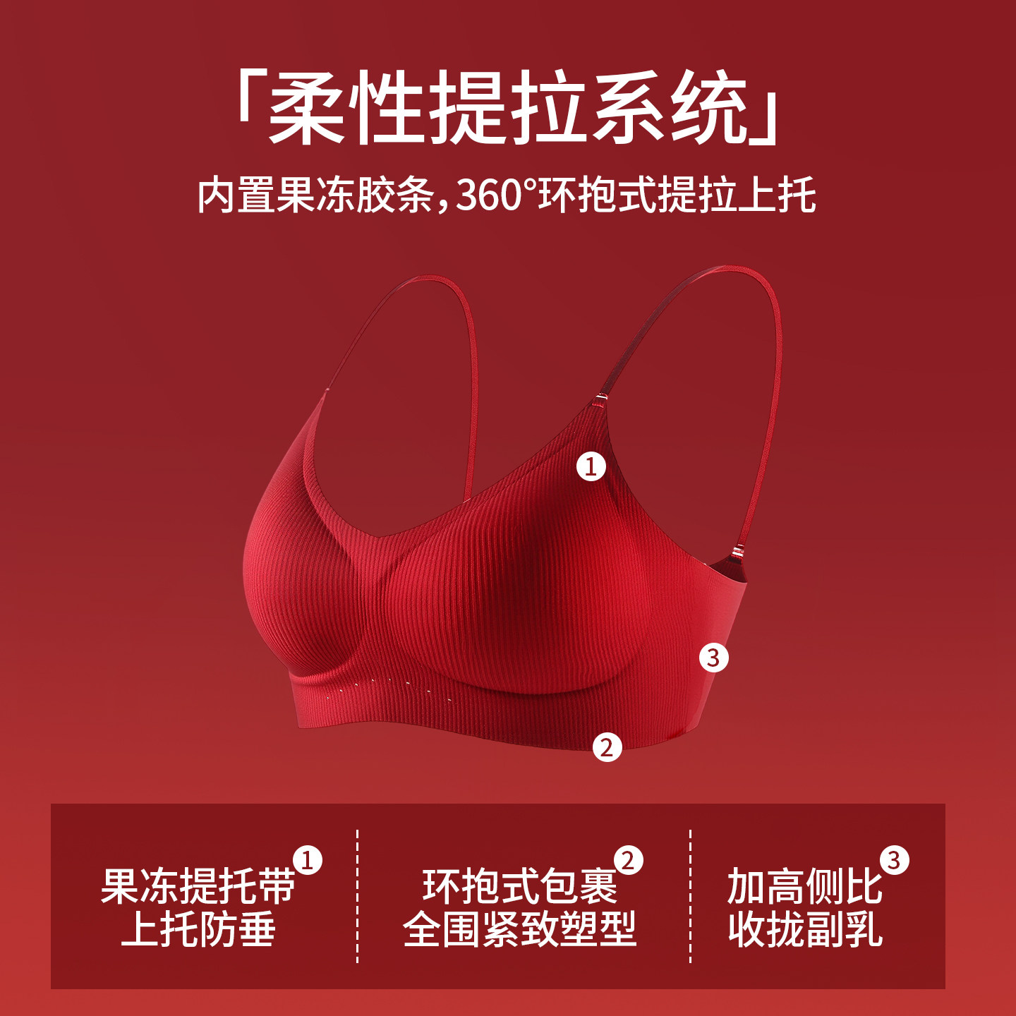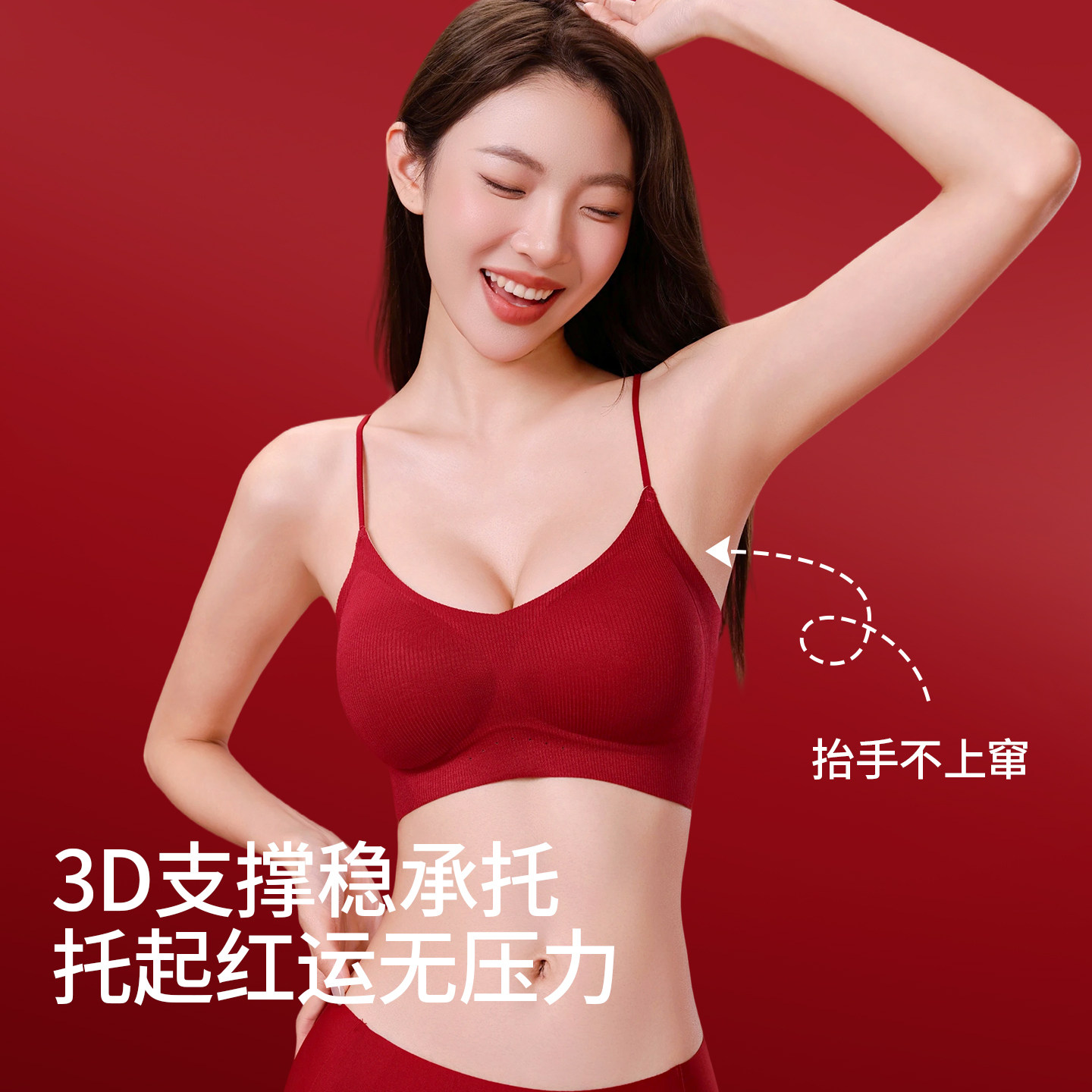 红色本命年无痕内衣套装女小胸聚拢新娘结婚新年2026马年文胸胸罩