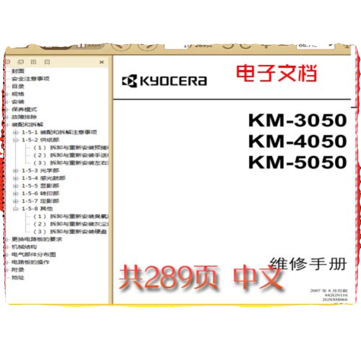 京瓷 KYOCERA KM-3050 KM-4050 KM-5050 黑白复印机中文维修手册