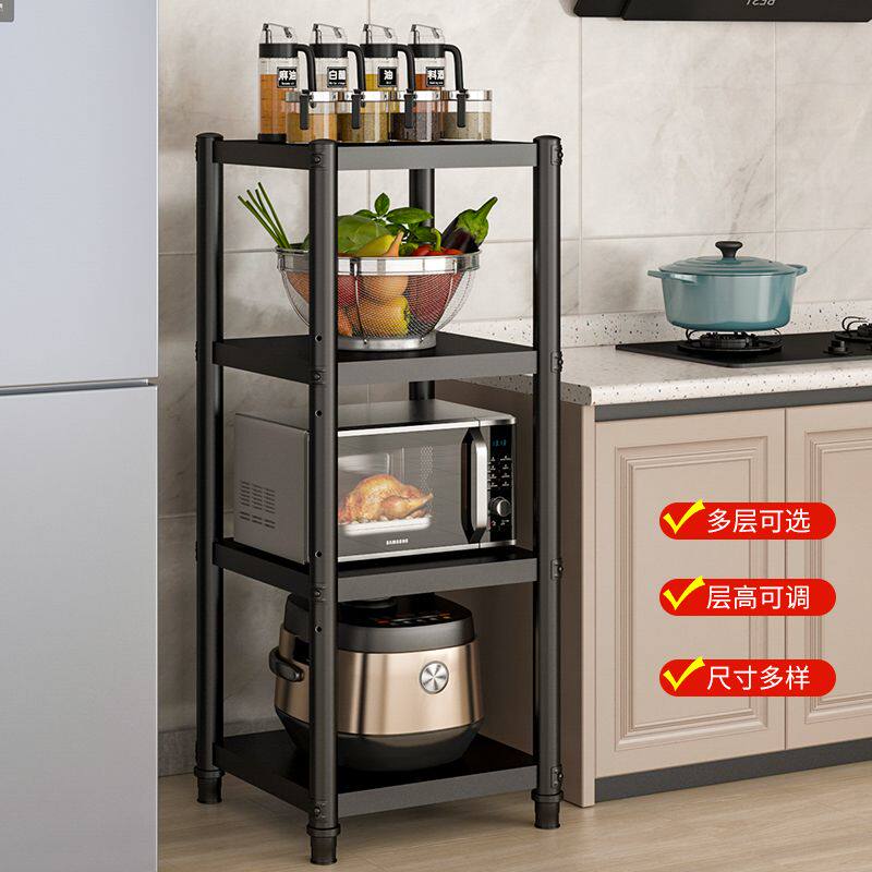 厨房落地碳钢置物架多层夹缝收纳微波炉架子家用储物架黑色加厚