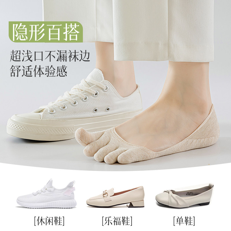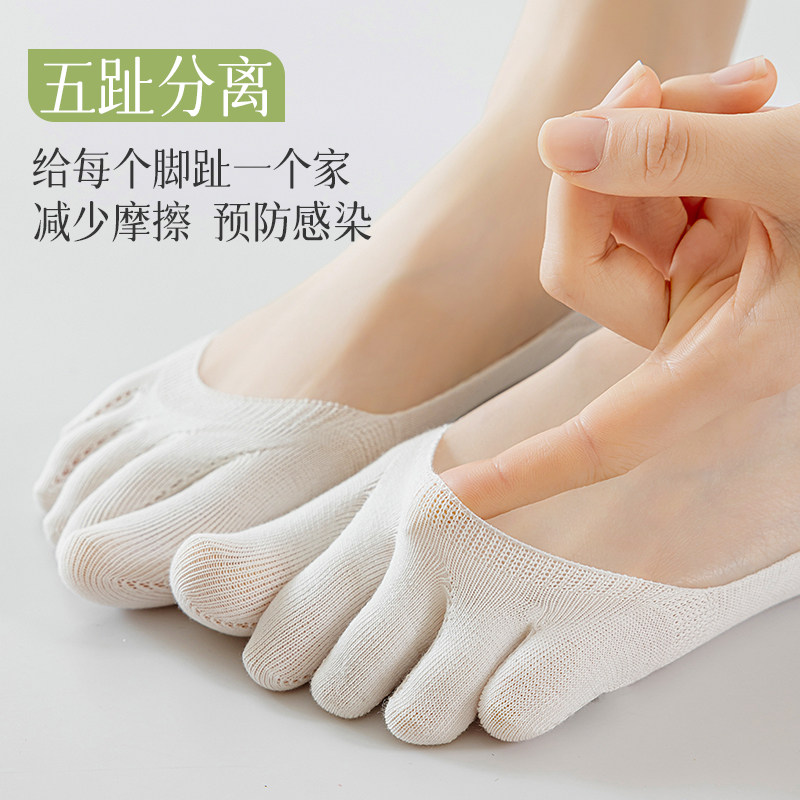 五指船袜女春夏季薄款纯棉防臭不掉跟浅口隐形分趾无骨短袜女夏天