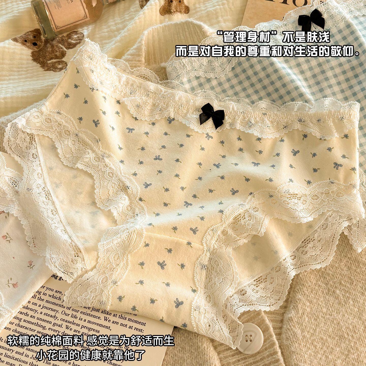 蝴蝶结内裤小清新女无痕蕾丝边少女甜美10A抑菌纯棉新款三角短裤
