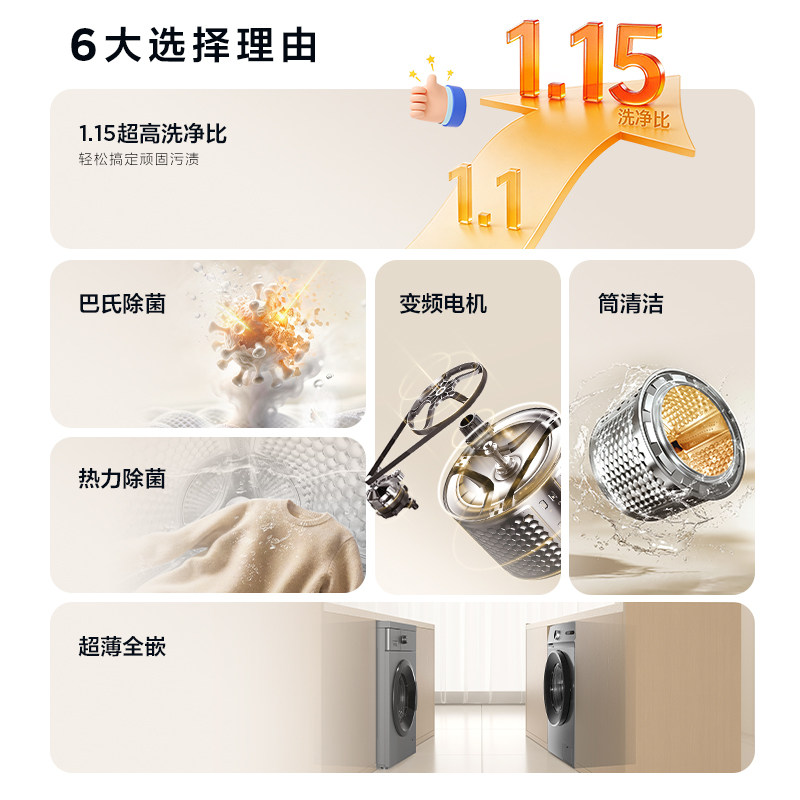 TCL10KG除菌变频洗衣机L3W大容量滚筒全自动家用国补以旧换新补贴
