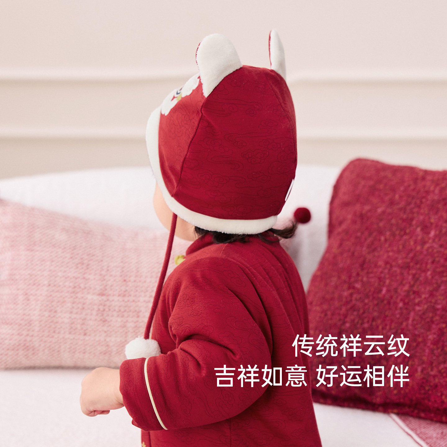 babylove婴儿帽子冬季纯棉保暖防风新年国风岁岁洽洽帽子