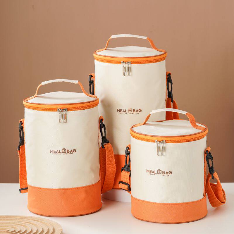 圆形保温袋上班族带饭手提外出圆筒保温袋斜挎饭盒保温学生便当袋