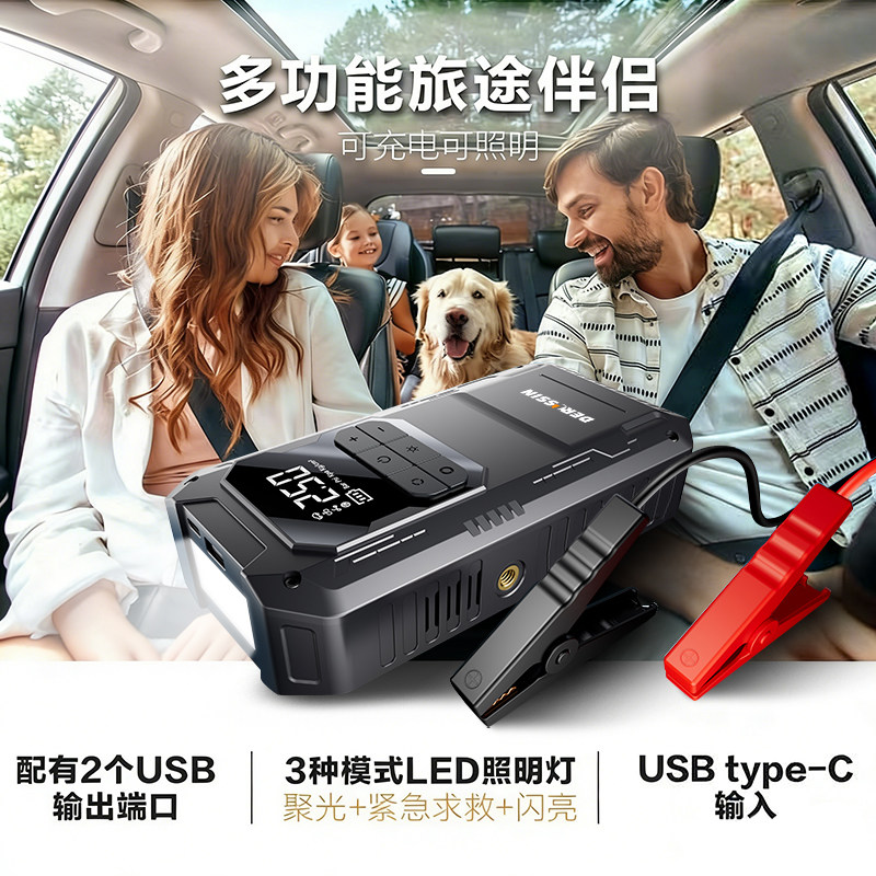 汽车启动应急电源车载充气泵一体机备用电瓶线强启搭火神器搭电宝