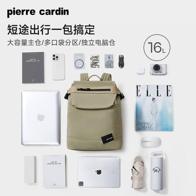 皮尔卡丹双肩包男女轻便大容量旅行背包男士休闲通勤潮流电脑书包
