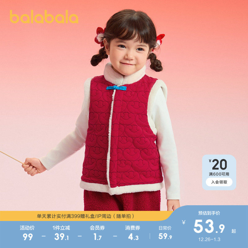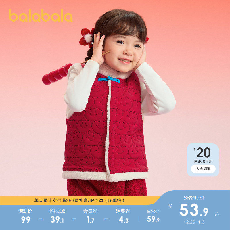 巴拉巴拉宝宝马甲夹棉2025新款男女童背心新年拜年红色加绒春秋装