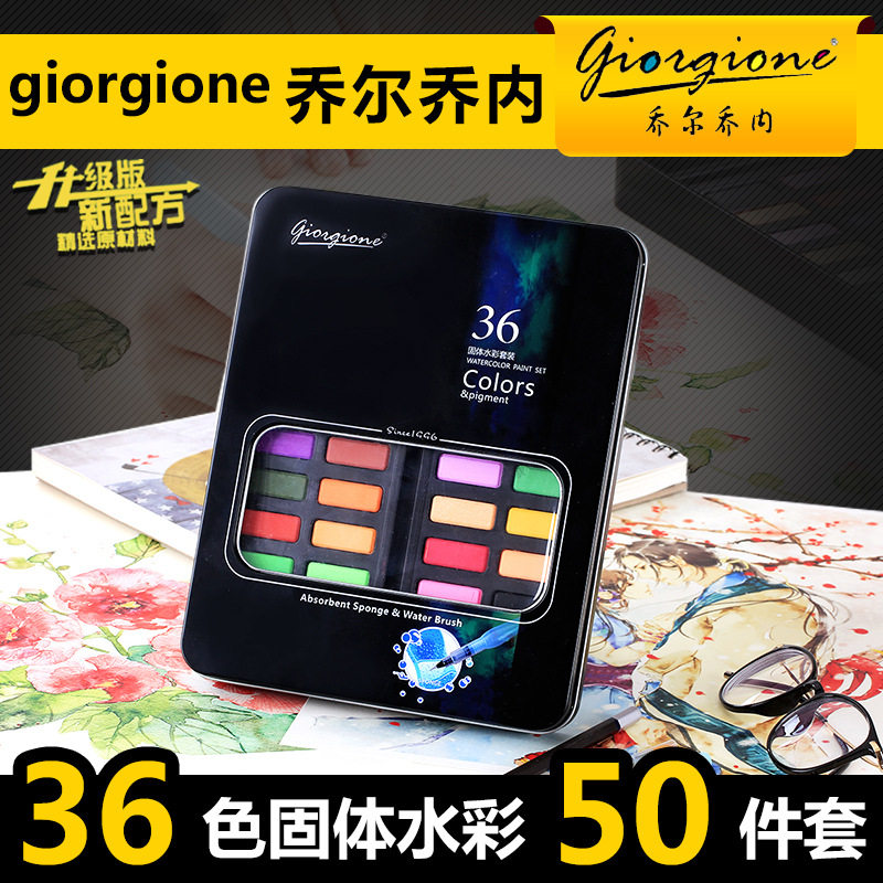 乔尔乔内固体水彩颜料套装美术用品自来水粉饼笔配件齐全36/48色