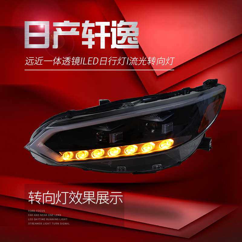 适用于20-22款14代新轩逸大灯总成改装LED日行灯流水转向灯