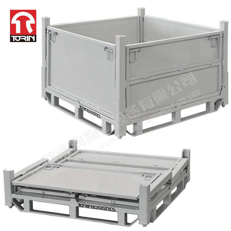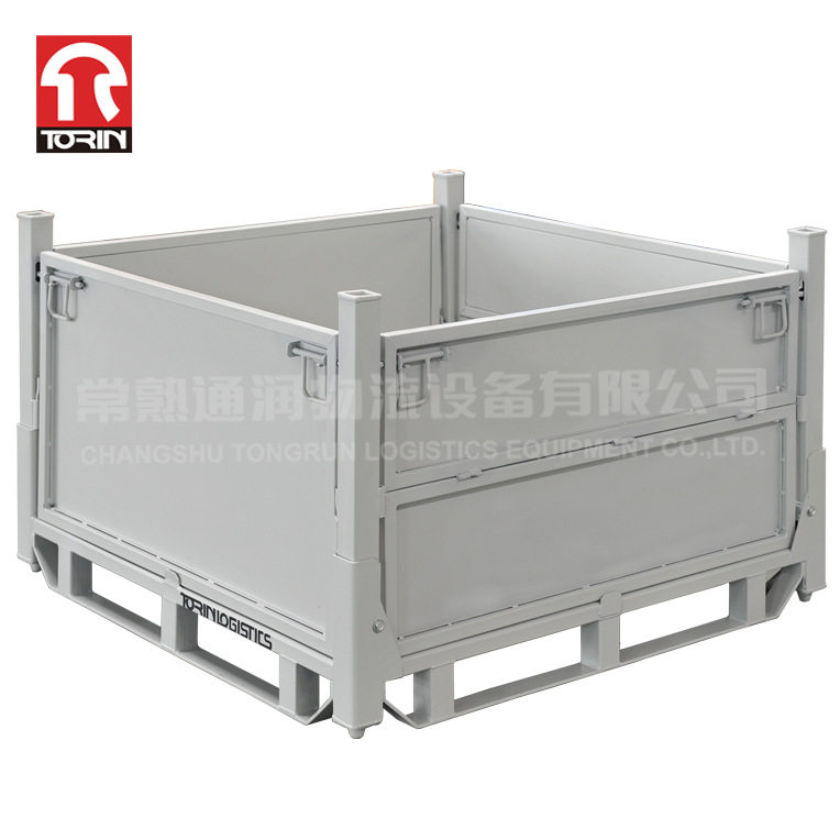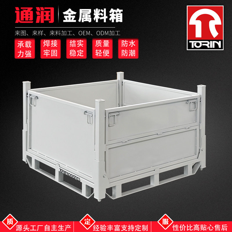 江苏通润折叠零件周转框金属料框板箱料箱半开门铁板箱周转箱金属