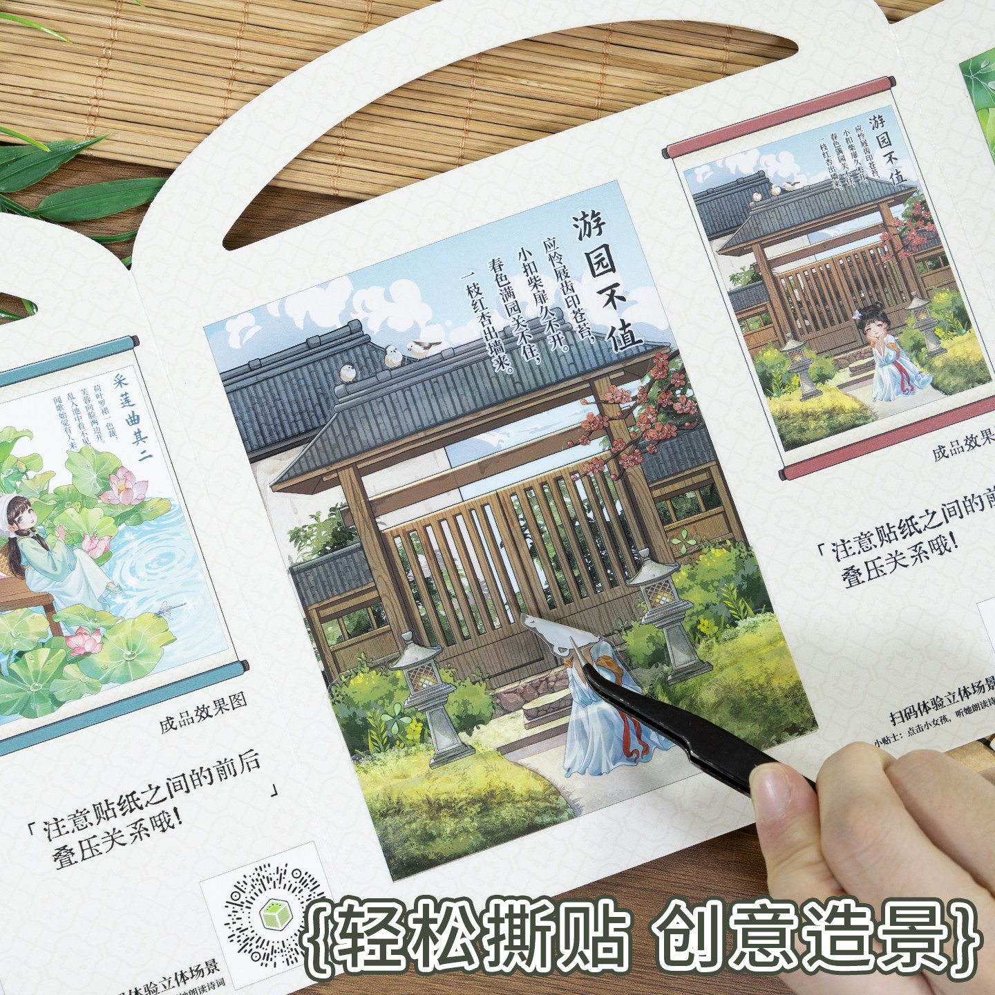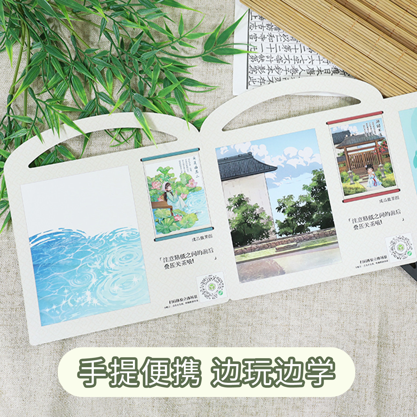 古诗词造景贴纸微缩场景儿童拼图免裁剪原创国风素材AR互动启蒙早教专注力培养手工制作diy装饰玩具安静书