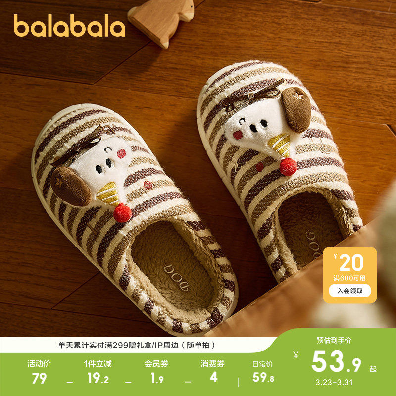 巴拉巴拉儿童棉拖鞋男女童宝宝室内鞋子秋冬棉鞋条纹卡通动物休闲