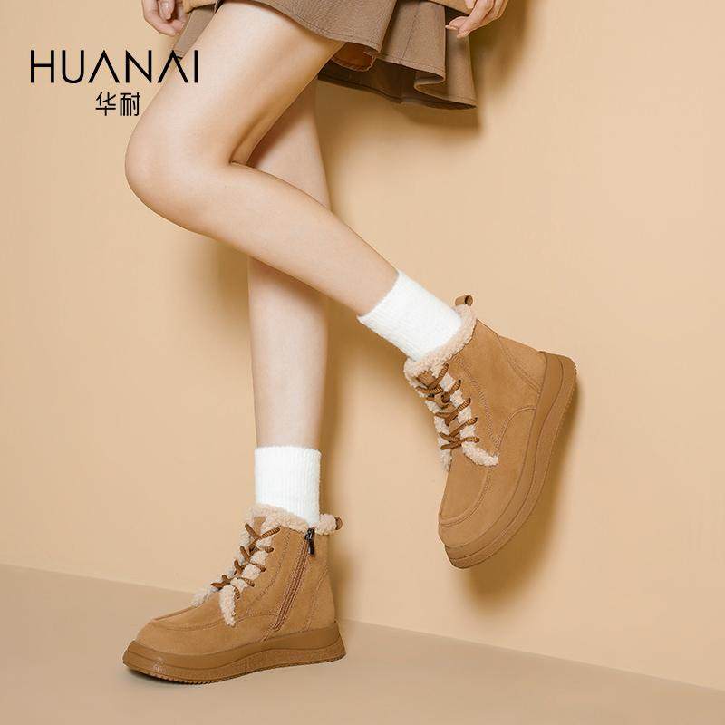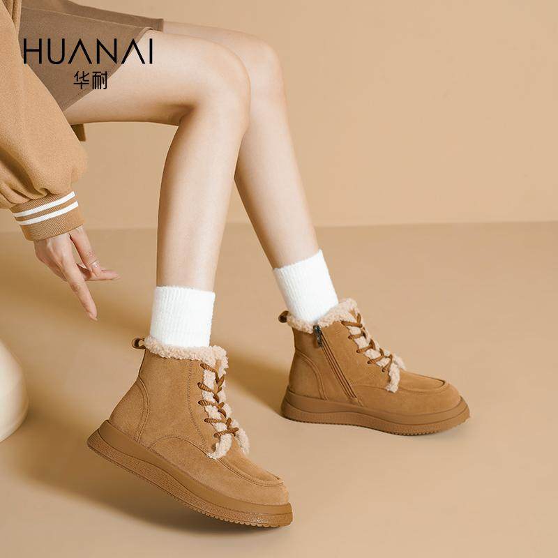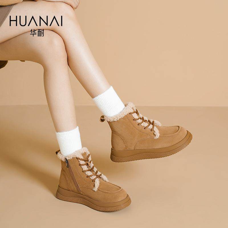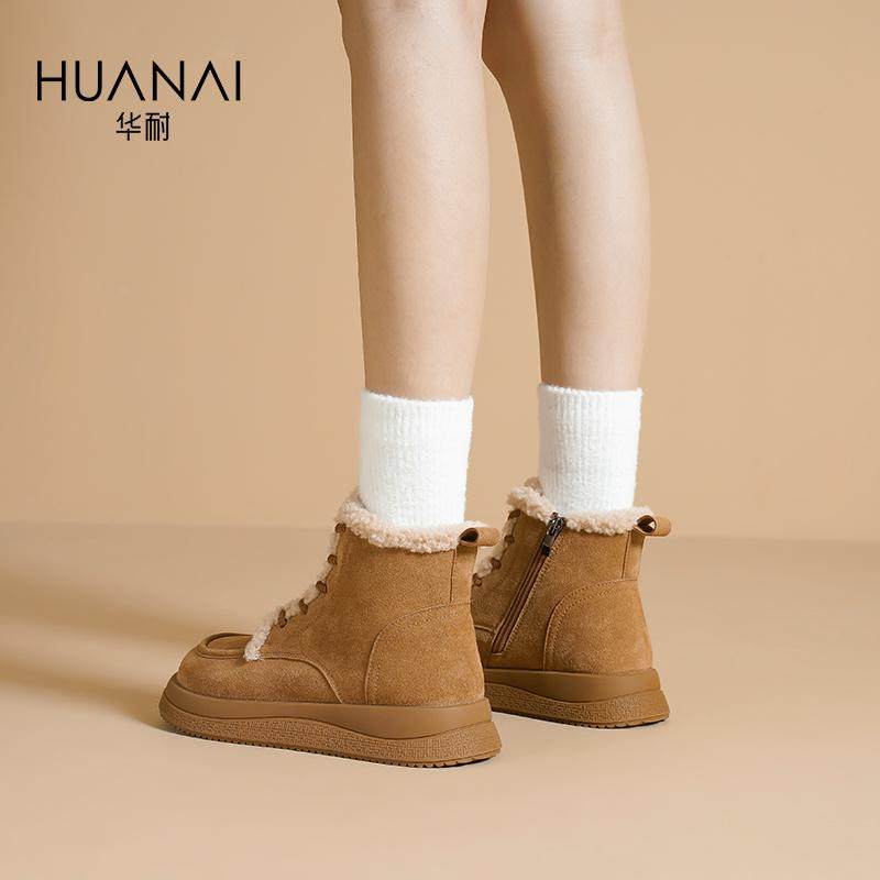 华耐高帮勃肯女鞋2025秋冬加绒加厚马丁靴羊羔毛雪地靴女厚底棉鞋