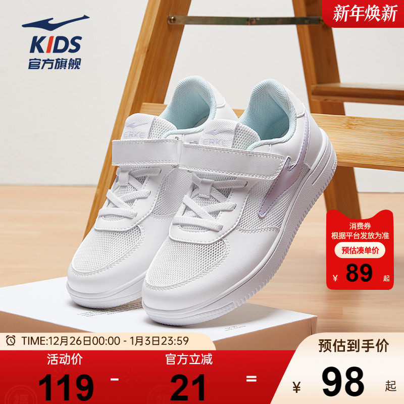 鸿星尔克童鞋儿童板鞋男童小白鞋秋季休闲运动鞋透气女童白色鞋子