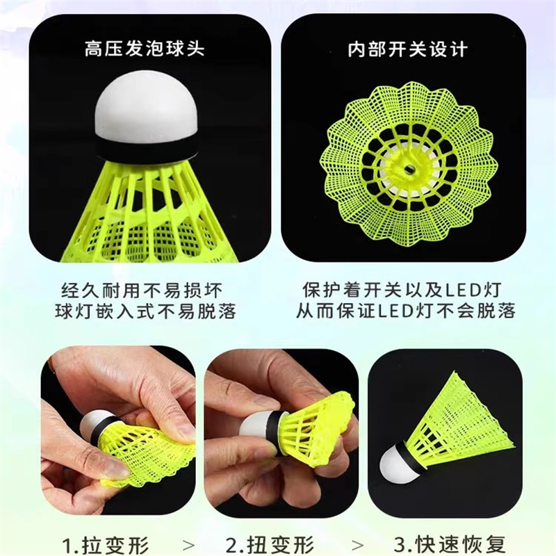 球头发光羽毛球防风夜光尼龙球带灯耐打夜用荧光发亮夜打闪光球