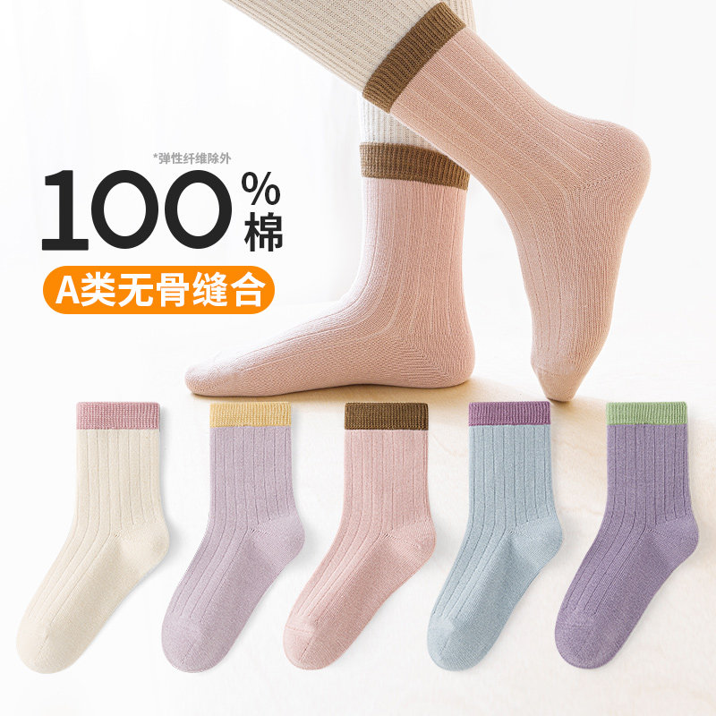 纯棉童袜春秋款夏季薄款防臭不起球男女袜子全棉中筒袜时尚儿童袜