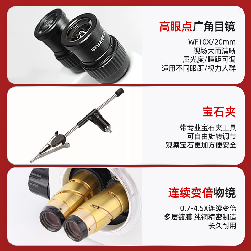 朗齐台式珠宝显微镜LQ-7045B高清红蓝宝石祖母绿鉴定仪器连续变焦可连接相机