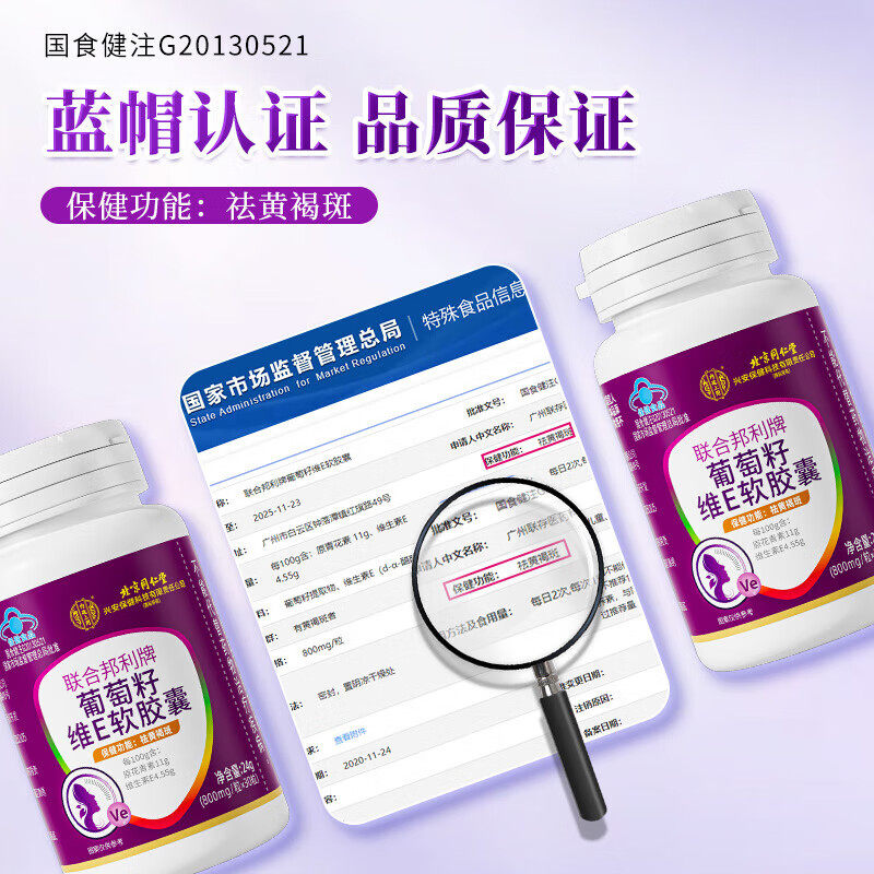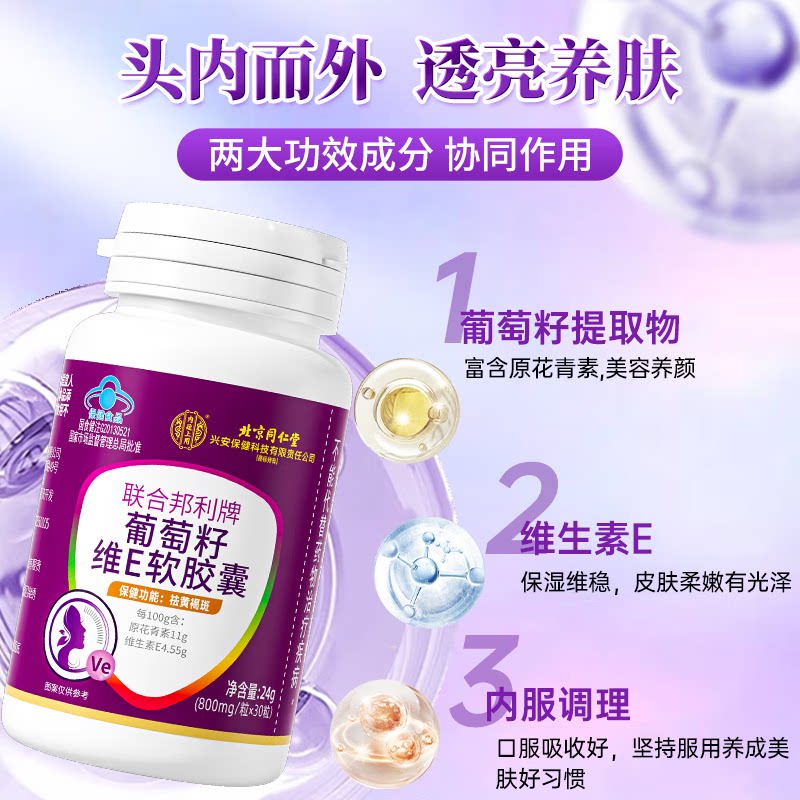 同仁堂葡萄籽胶囊提取物维生素e天然花青素淡内调黄褐雀斑抗氧化