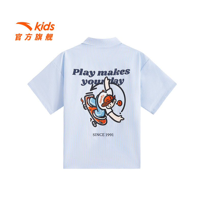 安踏儿童男大童短袖衬衫2025新款上新透气舒适中大童弹力潮流短袖