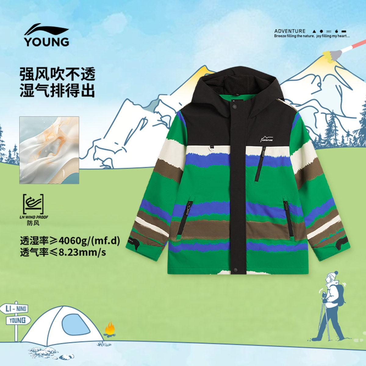 李宁童装三合一运动风衣套装男大童新款潮流户外系列冬季加绒童装