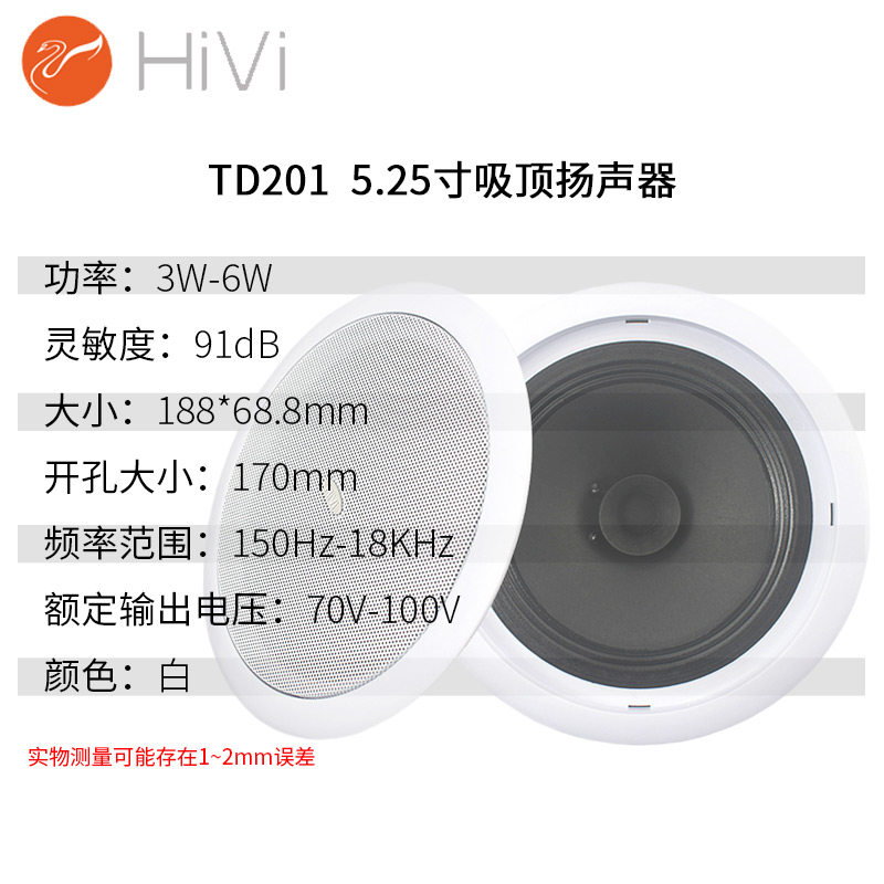 Hivi/惠威 TD201定压吸顶喇叭5寸天花吊顶音响嵌入式音箱功放套餐