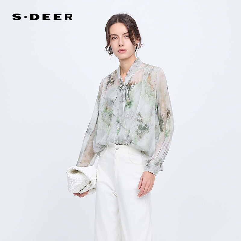 sdeer圣迪奥女装田园风系带印花两件套长袖衬衫S243Z0519