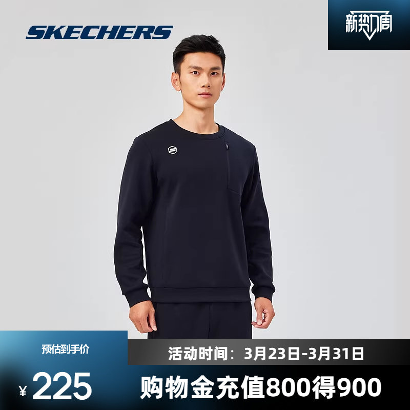 斯凯奇新品男士运动卫衣圆领设计针织套头衫弹力顺滑轻盈时尚前沿